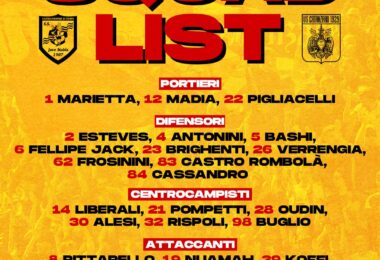I convocati di Mister Aquilani per la gara di domani con il Modena