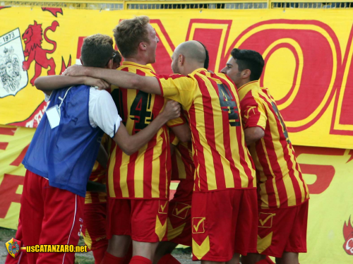 spostamento di Catacchini adesso è un altro Catanzaro. I terzini accompagnano l’azione e supportano i centrocampisti nella manovra. I giallorossi prendono d’assedio il Pontedera, Russotto in posizione più avanzata e vicino a Fioretti è molto più pericoloso e lo stesso attaccante romano comincia a vedersi di più. La condizione atletica dei giallorossi è migliore di quella dei granata. Fioccano i calci piazzati dal limite e l’arbitro sventola cartellini gialli ai difensori toscani. Il Catanzaro spinto dal suo pubblico attacca sotto la “Capraro”. Il nuovo assetto in campo trasforma i giallorossi che adesso sono arrembanti. Il goal è nell’aria ed è sfiorato più volte. C’è rammarico nei presenti che imprecano sul fatto che per un tempo il Catanzaro abbia atteso troppo. Nei minuti di recupero arriva il giusto premio ed esplode il “Ceravolo”: cross al centro di Benedetti, colpo di testa di Fioretti e miracolo dell’estremo difensore avversario, palla sul palo e deviazione vincente di Fiore. Al triplice fischio e con la vittoria in pugno esultano i calciatori giallorossi e i propri tifosi. È noto che la vittoria all’ultimo istante è più bella di una goleada. Basta guardare le facce dei tifosi e quella del presidente Cosentino, rientrato dalla Cina, che non sta nella pelle e scende in campo a festeggiare insieme ai suoi ragazzi raccogliendo i meritati applausi dei presenti. Il Catanzaro viaggia nei quartieri alti della classifica ed è una lieta sorpresa. Il torneo è equilibrato e da quello che si è visto in questa prima fase, non c’è la squadra ammazza campionato. Il Catanzaro di Brevi deve riuscire ad acquisire la consapevolezza di non essere inferiore a