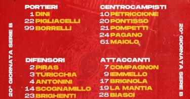 - Ci sono alcune defezioni importanti: Bonini, Buso, Coulibaly e D’Alessandro non saranno disponibili, mentre Koutsoupias è in dubbio (ndr. non e’ stato convocato).