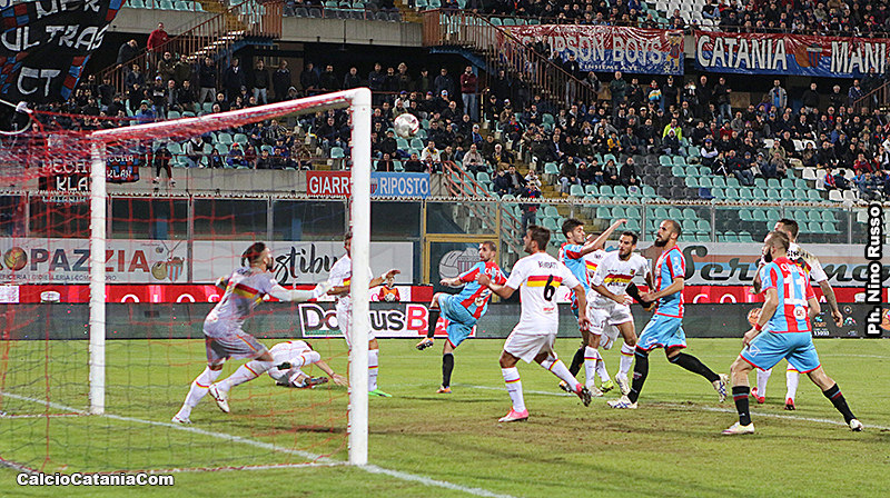 Nel secondo tempo si riparte con lo stesso copione, il Catania spinge ed al 65′ trova il gol con Cacetta che di testa devia imparabilmente in rete l’ennesimo calcio d’angolo battuto dai padroni di casa.