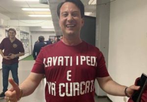 La maglia indossata dal massimo dirigente amaranto è risultata offensiva, irriguardosa e che potenzialmente poteva istigare episodi di violenza considerata la sconfitta della squadra ospite.
