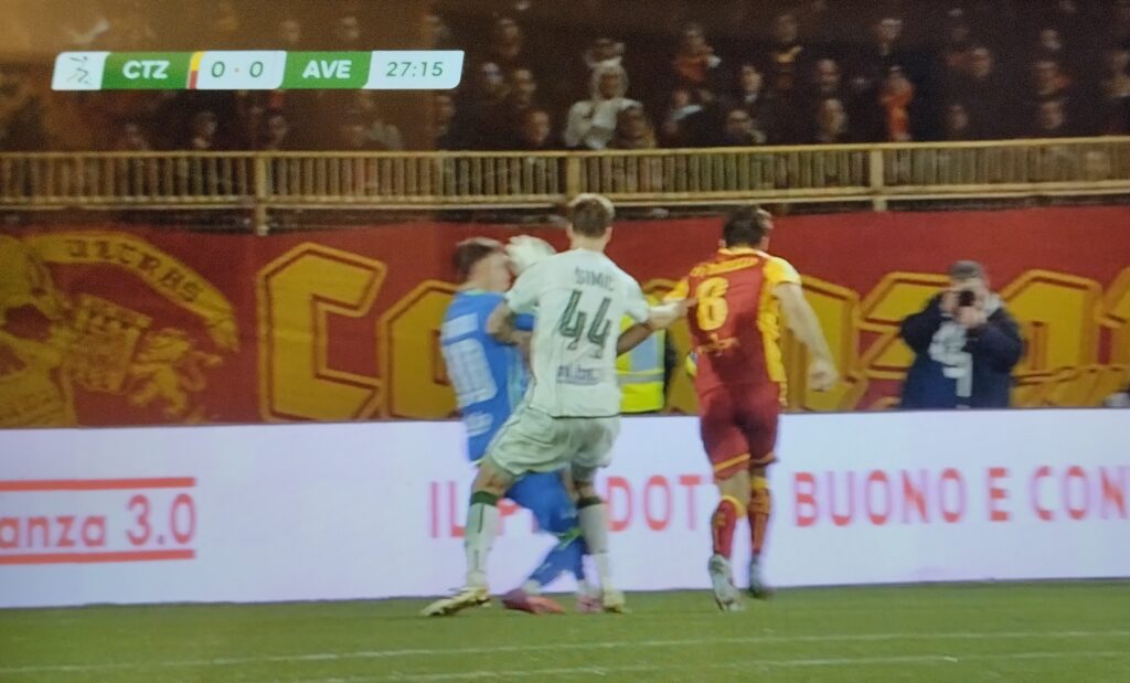 Calzavara, come potete vedere dalla nostra copertina, è proprio a due passi e fischia subito la spinta fallosa a Besaggio, non convalidando il gol all’Avellino, tra le proteste dei giocatori biancoverdi. Anche in questo caso, nessun intervento esplicito dalla sala VAR.