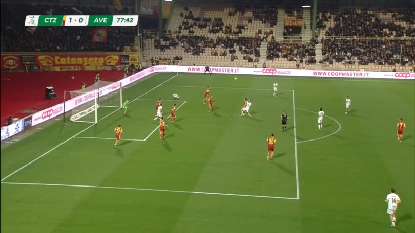 A 49° arriva forse l’unico possibile errore di Calzavara. Su una ribattuta della difesa giallorossa, Sounas calcia da appena fuori area, contrastato da Petriccione: il tiro è sbilenco e finisce fuori, con l’arbitro che assegna l’angolo ai biancoverdi, tra le proteste del regista delle Aquile, che effettivamente sembra non aver toccato la sfera.