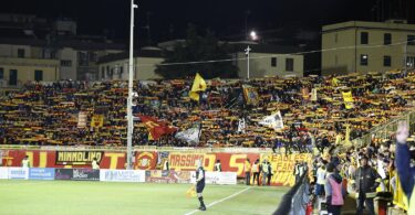 1′ – Inizia il match. I giallorossi attaccheranno verso la Curva Ovest “Massimo Capraro”. 0-0