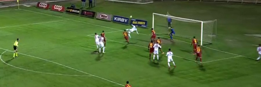 In occasione del pari sulla sfera si avventano Bianchimano e Kanoutè, che cercano la deviazione di testa. La palla finisce in rete e vista la differenza di statura sembra naturale attendersi l’esultanza di Bianchimano, ma al contrario è Kanoutè a impazzire di gioia per essersi sbloccato dopo un lungo digiuno.