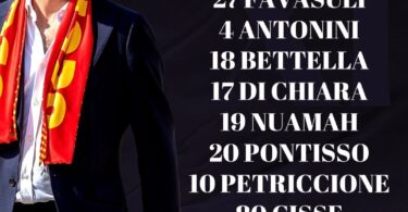 CATANZARO (4-2-3-1): Pigliacelli; Bettella, Antonini, Di Chiara; Favasuli, Pontisso, Petriccone, Nuamah; Iemmello, Cissé; Pittarello. All. Aquilani. A disp: Marietta, Pandolfi, Liberali, Brighenti, Verrengia, Oudin, Alesi, Rispoli, Buso, Frosinini, D’Alessandro, Buglio.