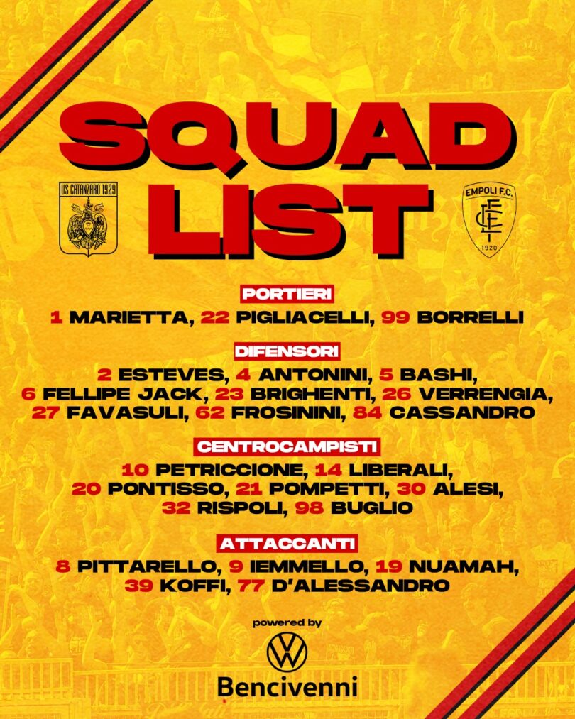 Catanzaro – Empoli: 24 i convocati