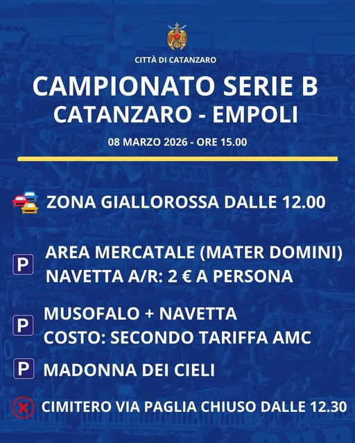 Dalle ore 12:00 di domani, nelle zone adiacenti allo Stadio Nicola Ceravolo, sarà attiva la “Zona Giallorossa”.