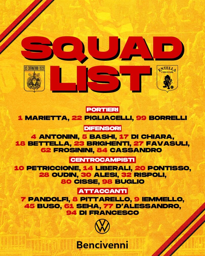 Dei ventisei convocati, tre non troveranno posto nemmeno in panchina: domani conosceremo i loro nomi, quando sarà nota la distinta prima della gara delle 17:15 al Nicola Ceravolo.