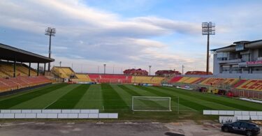 2′ Il Catanzaro attacca verso la Curva Massimo Capraro. Primo tentativo del match di Karlo Butic con un sinistro da fuori area che si perde a lato.
