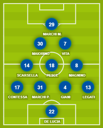Indisponibili: nessuno. Squalificati: nessuno. Diffidati: Marchi P., Legati.