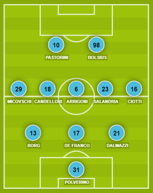 Indisponibili: Bombagi. Squalificati: Ghion. Diffidati: Brighenti.