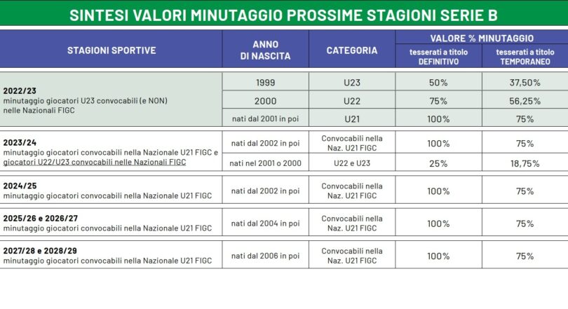 In copertina la tabella per il contributo sul minutaggio fino al 2028/29 per la Serie B