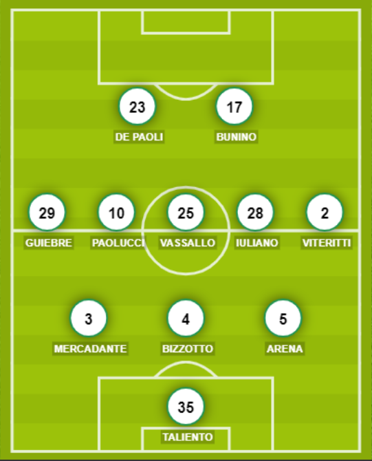 Indisponibili: Steau, Satalino, Piccinni. Squalificati: Riggio, Soleri. Diffidati: Starita, Mercadante.