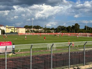 Nel pomeriggio “al Mirko Gullì”, il tecnico Vivarini dopo una fase di riscaldamento con la palla, ha fatto effettuare un test a tutto campo contro i ragazzi della primavera. I due undici schierati nei due tempi di gioco non consentono di decifrare la formazione iniziale prevista per il Picerno. Il mister ha mischiato le carte, alternando i possibili titolari. L’unica certezza è il pacchetto arretrato, anche oggi schierato a inizio partita, composto da Brighenti nella posizione di centrale, da Mulè sul centrodestra e da Gatti sull’altra sponda. Fulignati dovrebbe essere favorito su Sala per difendere la porta dei giallorossi.