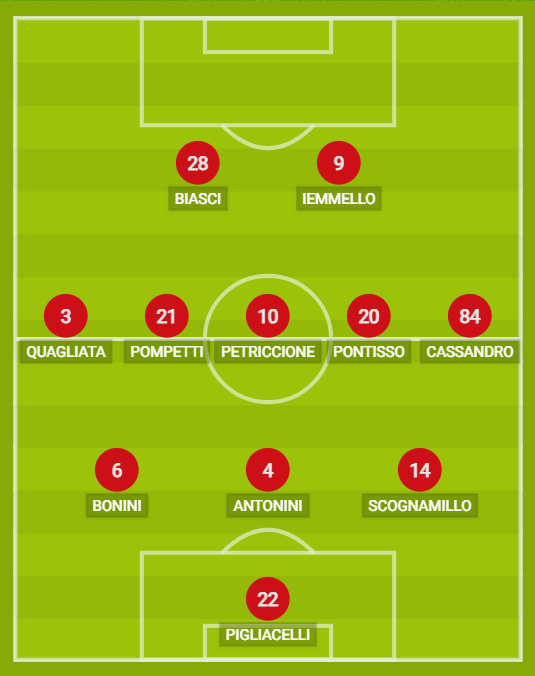 Indisponibili: D’Alessandro, Situm, Pagano. Squalificati: Pittarello. Diffidati: Coulibaly, Bonini, Brighenti.