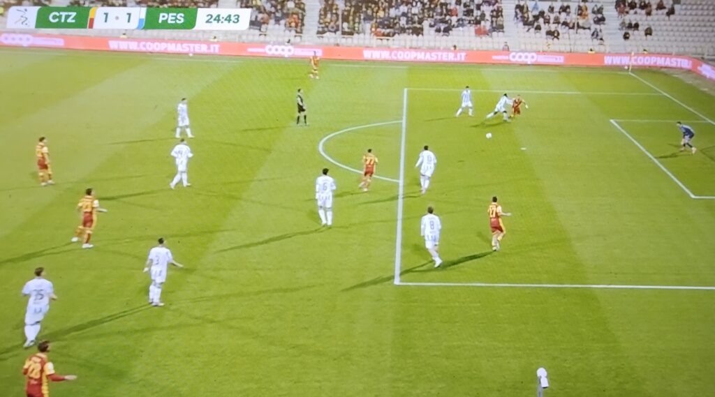 Prima solo un intervento arbitrale da ricordare: al 19° angolo infruttuoso per il Pescara, pallone messo fuori dall’area e Rispoli innesca il turbo per la ripartenza, bloccato però fallosamente da Dagasso, che prende un meritato giallo.