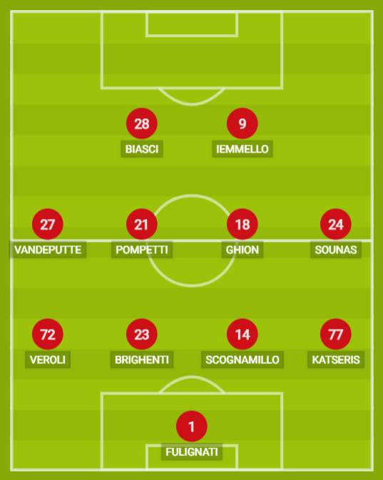 Indisponibili: Situm, Donnarumma. Squalificati: nessuno. Diffidati: Katseris.