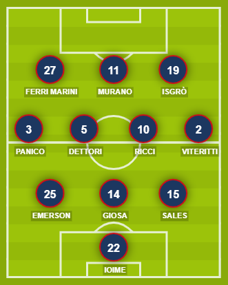 POTENZA (3-4-3): 22 Ioime; 15 Sales, 14 Gioisa, 25 Emerson; 2 Viteritti, 10 Ricci, 5 Dettori, 3 Panico; 19 Isgrò, 11 Murano, 27 Ferri Marini. A disposizione: 1 Breza, 6 Sepe, 26 Di Somma, 28 Silvestri, 4 Iuliano, 7 Coccia, 21 Nembot, 23 Coppola, 8 Vuletich, 13 Arcidiacono, 29 Longo, 30 Souare. Allenatore: Raffaele.