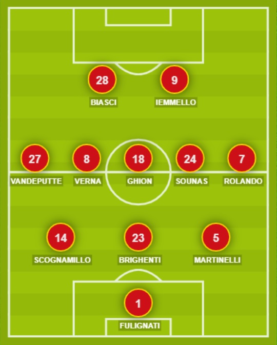 Indisponibili: Situm, Tentardini. Squalificati: nessuno. Diffidati: Iemmello, Martinelli, Scognamillo.