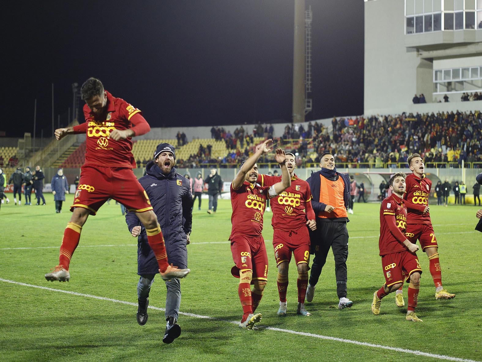 Ora può iniziare la consueta festa. Il “Ceravolo”, in tutti i suoi settori, mostra con fierezza le sue sciarpe, colorando lo stadio in un manto giallorosso. “Per quelli innamorati come noi…” risuona sulle note de “I Maschi” di Gianna Nannini. Si festeggia in campo e dalla tribune si alza fortissimo il coro “Serie B, Serie B”. Vivarini si gode lo spettacolo, chiaramente commosso. Si sofferma a guardare il popolo giallorosso che aspetta di coronare questo sogno atteso per anni e di tornare nel calcio che conta. Il Crotone, con 14 punti di ritardo in classifica, Foggia e Pescara a -30 sono la conferma dell’incredibile marcia giallorossa. Dopo due giorni di riposo, comincerà la settimana che porterà al posticipo di lunedì 13 marzo. Sarà il momento del rendez-vous finale contro il Crotone, degno avversario dei giallorossi in questo lungo campionato. Quasi certamente non ci potranno essere i tifosi giallorossi per motivi di ordine pubblico. Davvero un peccato per il calcio e per la Calabria, vista anche la diretta tv su Rai Sport. Allo “Scida” toccherà alla squadra di Vivarini supplire a questa assenza. E fare ammirare anche a 60km da casa, anche ai più scettici, anche a chi ci è rimasto male, anche a quelli che non si rassegnano alla netta supremazia giallorossa, quanto sia forte e bello questo Catanzaro.