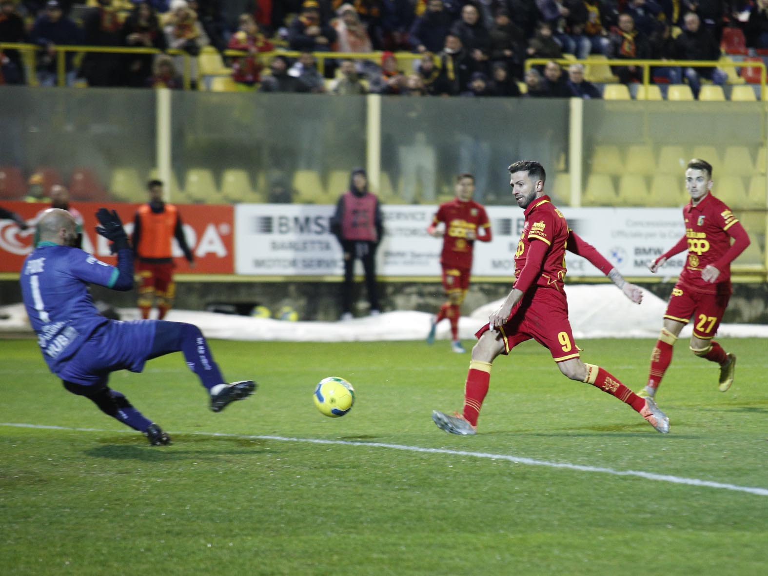 Palla al centro e si ricomincia come se nulla fosse accaduto. Il Catanzaro tesse la sua manovra con pazienza e inizia a trovare qualche varco. Un maldestro controllo di Biasci, giustificato dal campo leggermente allentato per una pioggerellina insistente che cade per tutto il primo tempo, spreca un contropiede al 15esimo minuto. Dopo sette minuti è ancora Biasci da due passi in scivolata a non sfruttare un bell’assist di Verna dopo una percussione laterale. La voglia del Catanzaro di riprendersi partita e campionato sta tutta nella rincorsa di Vandeputte, servito da un assist al bacio di Ghion dalla trequarti. Il belga corre con Ricciardi verso Pane e il difensore avellinese gli frana addosso: è rigore. Memore del penalty fallito all’andata, Iemmello lascia a Biasci la trasformazione. L’attaccante giallorosso calcia male, Pane gettandosi sulla sinistra intuisce e respinge, ma il tap-in dell’attaccante catanzarese è letale. 1-1. Il Catanzaro continua a fare la partita, ma l’equilibrio regna sovrano al punto che i lupi, con un esterno destro di Ricciardi, potrebbero di nuovo passare in vantaggio. Fulignati neutralizza tuffandosi sulla sua destra e respingendo la pericolosa conclusione. La partita scivola verso l’intervallo ma, proprio nel minuto di recupero, la grande occasione è per Vandeputte. Il belga, lanciato verso la porta avversaria da un assist al bacio di Iemmello, colpisce forte ma sfiora solo il palo. Il primo tempo termina 1-1 e il risultato è giusto.