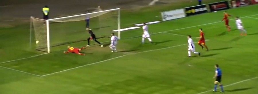 La Reggina sembra più fresca, sicuramente agevolata dal vento che soffia alle sue spalle e si ritrova a confezionare due pregevoli giocate sull’out di destra, una di queste vede Reginaldo impegnare severamente Bleve.