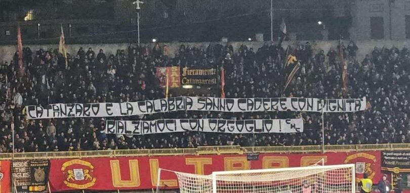 Dopo il maltempo che in settimana ha colpito duramente Catanzaro, lasciando ferite visibili in città e nel quartiere marinaro, ma anche su tutta la costa del basso jonio, la curva ha scelto il linguaggio più diretto e più vero: quello della dignità.