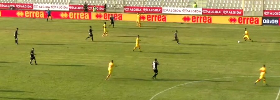 È stata proprio la posizione di Di Livio a stravolgere i piani di Grieco che ha cercato di rimediare sostituendo Maimone con Megealitis e Grillo con Cozza, dispondendosi quindi con il 4-4-1-1 che prevedeva un irrobustimento della linea difensiva e l’estro di Palermo al servizio di Scardina.
