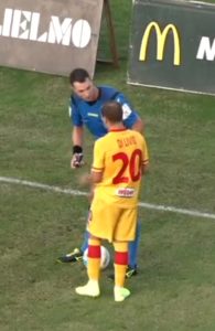 Il numero 5 giallorosso, da autentico mastino di fascia ha messo alle corde Parisi e Ferrini con due azioni insistite e senza mai mollare la presa, finché Ferrini lo ha messo giù per il penalty del 3-0 firmato da Giannone.