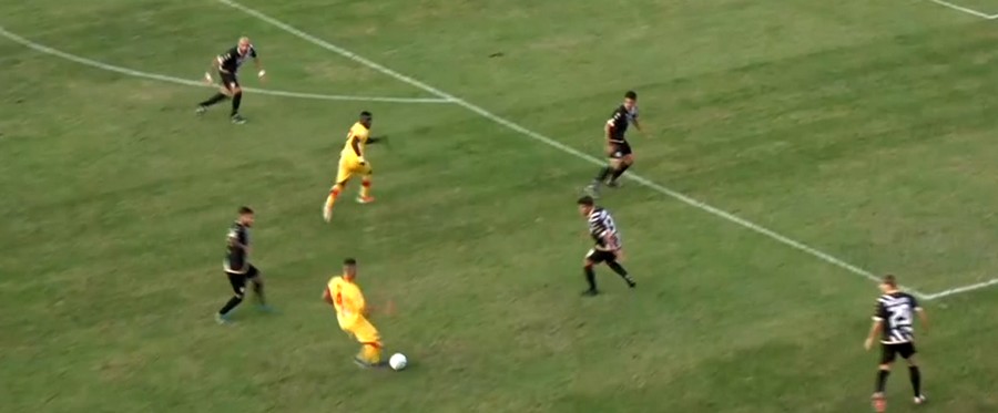 Per entrambe le squadre ha funzionato meglio la corsia destra. Il Catanzaro ha giovato dello splendido stato di forma di Kanoutè, mentre la Sicula ha fatto affidamento sulla velocità di De Rossi e gli inserimenti di Palermo.