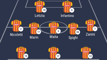 CATANZARO (3-5-2): Marcantognini; Gambaretti, Di Nunzio, Riggio; Zanini, Spighi, Maita, Marin, Nicoletti; Infantino, Letizia. A disposizione: Pellegrino, Sabato, Cason, Sepe, Van Ransbeeck, Badjie, Cunzi, Puntoriere, Falcone, Corado, Valotti. Allenatore: Pancaro.