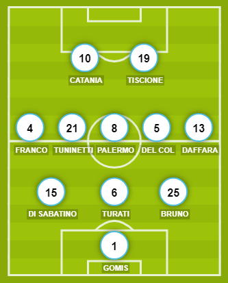 Auteri perde Figliomeni in difesa, al suo posto gioca Signorini. In avanti Fischnaller dal primo minuto. Raciti può contare sul nuovo acquisto Tiscione. In porta ballottaggio Gomis-Messina