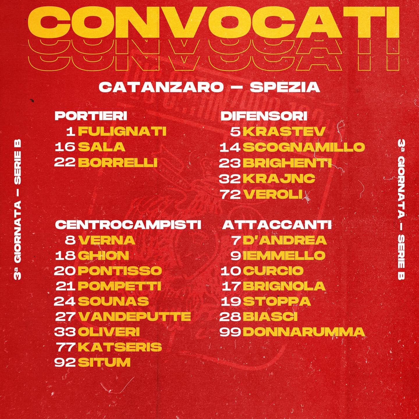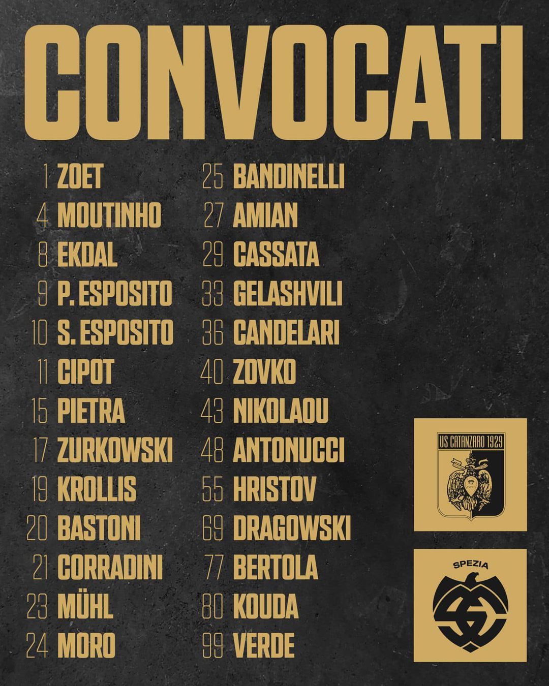 E di seguito quella di mister Alvini per lo Spezia.