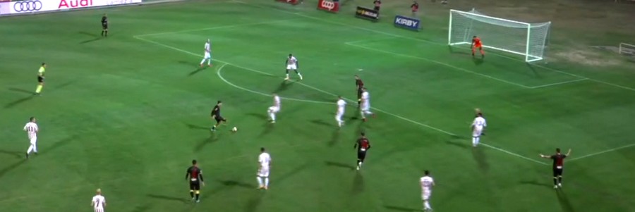 È solo il preludio al gol che arriva poco più tardi ancora con una ripartenza e ancora sulla fascia di Contessa che serve Di Massimo il quale entra in area e trova splendidamente Carlini. Una cannonata che sfonda la rete, persino i malconci server di ElevenSport vanno in tilt cercando di misurare la velocità del pallone.