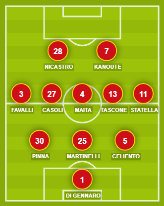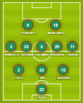 Indisponibili: Mangni, Bianchimano. Squalificati: nessuno. Diffidati: Celiento, Maita.
