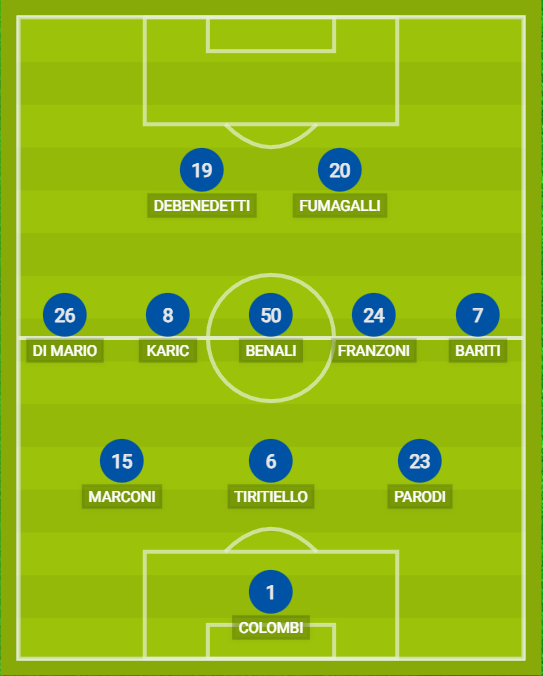 Indisponibili: Pompetti, Verrengia, Nuamah. Fuori distinta: Borrelli, Bashi, Seha. Squalificati: nessuno. Diffidati: Brighenti.