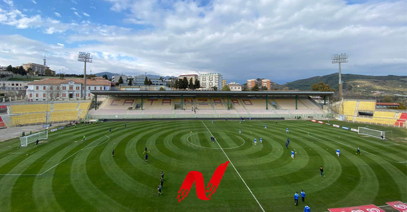 Riscaldamento – Squadre in campo per la fase di riscaldamento. Catanzaro raccolto a ridosso della bandierina lato Curva Ovest e impegnato in una serie di allunghi. Francavilla dalla parte opposta radunato in cerchio per la fase di stretching. Il terreno di gioco sembra in ottime condizioni. Giornata primaverile ma caratterizzata dal vento che da queste parti non manca mai.