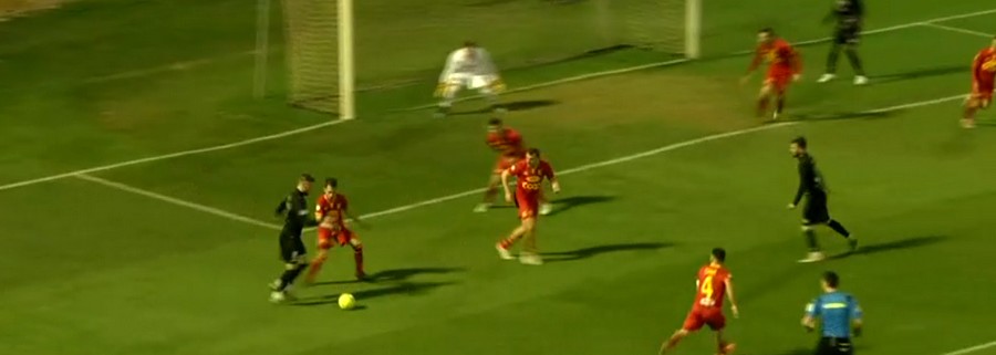 L’energica opposizione di Negro ha messo a dura prova le capacità di Kanoutè che ha sbagliato la più ghiotta delle occasioni dopo aver superato l’avversario sulla corsa e mandando la palla a fil di palo.