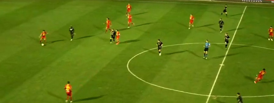 Ciò che è cambiato nel secondo tempo è stata la capacità dei giallorossi di uscire con maggiore lucidità dalla fase di pressing creando superiorità e dunque lasciando gli ospiti allungati e squilibrati.
