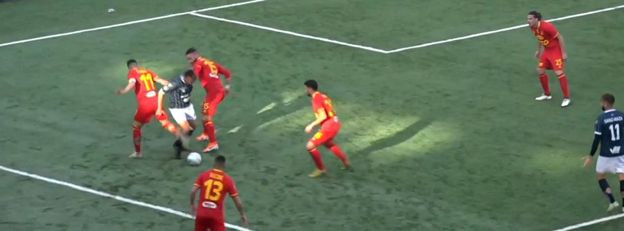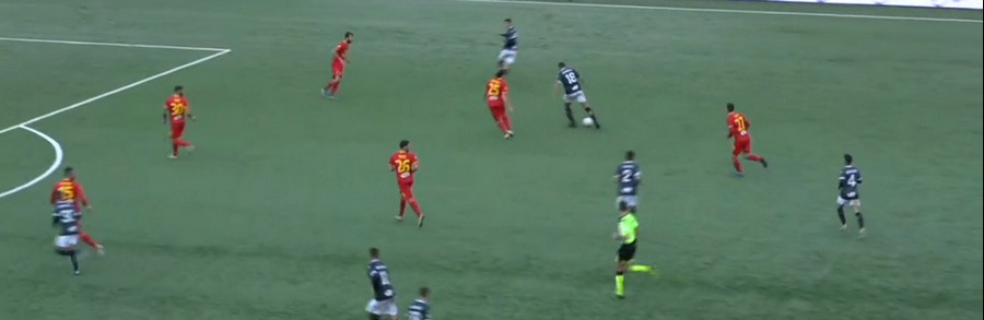 La linea mediana più folta garantisce più solidità difensiva, tuttavia questo non basta a impedire situazioni pericolose che nascono per errori individuali ma anche per le capacità dell’avversario. In occasione del pari di Russotto, Spaltro era riuscito a superare Statella e crossare prima che Risolo chiudesse la diagonale.