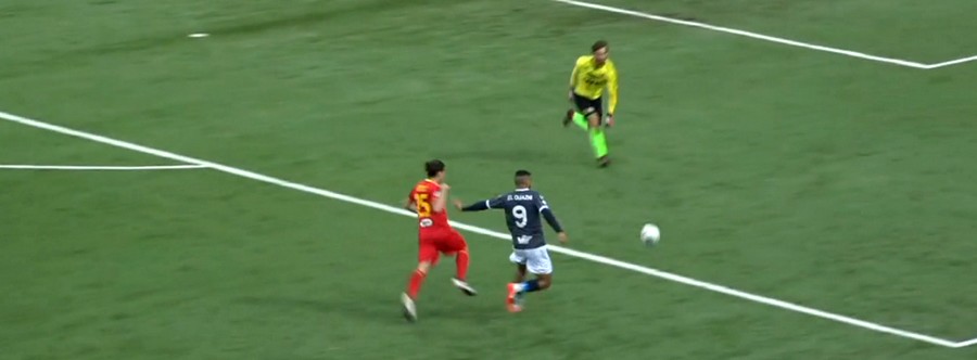 Kanoutè fa prevalentemente due tipi di giocata: prima si muove centralmente spalle alla porta per facilitare lo scarico e suggerire il passaggio sul compagno che si smarca, poi fa da ricevitore girando fra la linee e cercando di imbeccare il compagno pronto all’inserimento. Con la marcatura a uomo si è visto poco.
