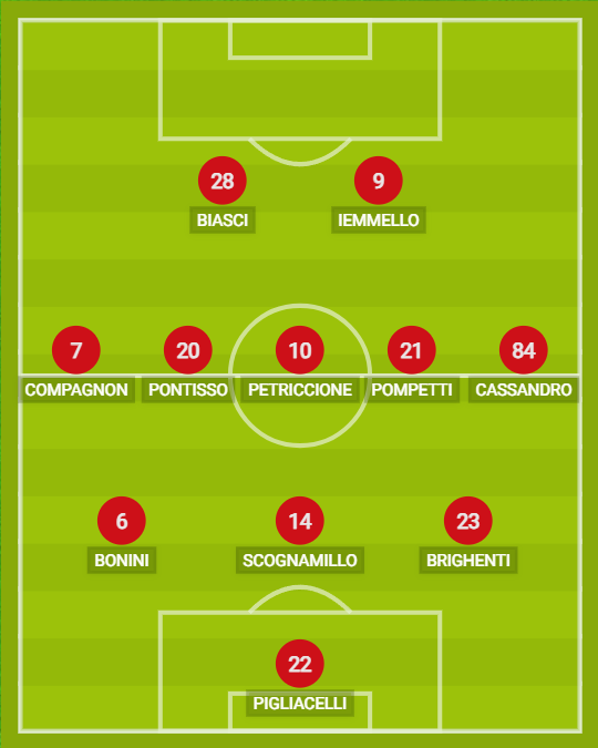 Indisponibili: Camporese, Gyamfi. Squalificati: Florenzi. Diffidati: Kourfalidis, Kouan, Micai, Strizzolo.