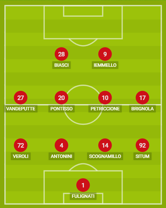 Indisponibili: D’Andrea, Ghion, Ambrosino. Squalificati: nessuno. Diffidati: Scognamillo, Iemmello.