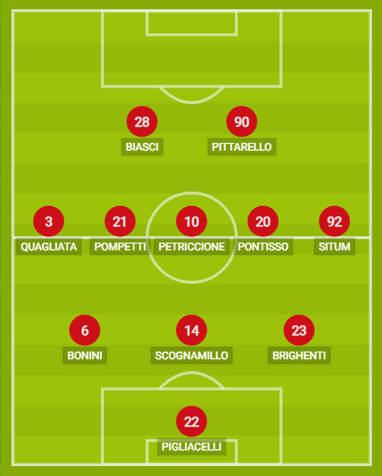 Indisponibili: D’Alessandro. Squalificati: Iemmello. Diffidati: Pittarello, Coulibaly, Bonini, Brighenti.