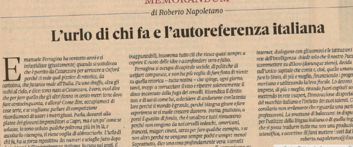 E intanto, nell’inserto domenicale del Sole 24 ore, il direttore Roberto Napoletano dedica al nostro Ferragina il suo Memorandum: scaricatelo qui