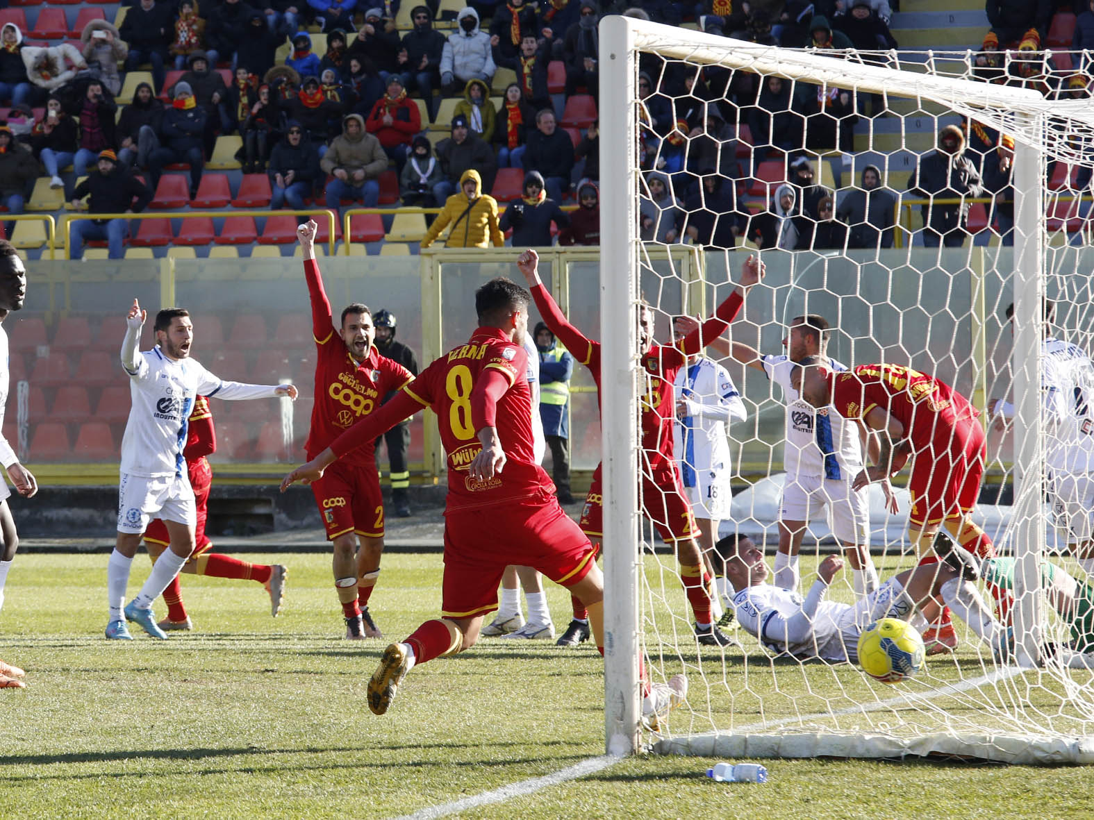Il secondo tempo inizia col Catanzaro che attacca sotto la curva ospiti. Si gioca in una metà campo sola. Nei primi dieci minuti Pontisso impegna severamente Polverino, chiamato al miracolo per deviare una conclusione fortissima del mediano giallorosso. Poi Iemmello, servito da Sounas, a tu per tu con il portiere calcia a fil di palo, incredibilmente fuori dallo specchio della porta. Il Catanzaro non riesce a trovare il meritato raddoppio. Vivarini procede con i primi cambi. Fuori Brignola e Curcio, dentro Situm E Biasci. I giallorossi ora sono arrembanti. Verna, servito da Biasci, con il portiere fuori dai pali spara alto. Il gol è nell’aria. Ancora su azione d’angolo, Vandeputte serve fuori per Pontisso che calcia al volo e colpisce il braccio larghissimo di Ekuban: è rigore netto. Iemmello spiazza Polverino e insacca alla sua destra. Le due reti giallorosse arrivano non casualmente da situazioni a palla inattiva, che Vivarini prova ripetutamente durante la settimana con i suoi ragazzi.