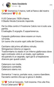 Il messaggio è chiaro: il Stadio Nicola Ceravolo deve diventare un muro, un’onda, un tuono. Non spettatori, ma protagonisti. Non semplice tifo, ma pressione continua.