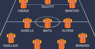 Pochi dubbi a centrocampo dove dovrebbero agire Agnello, Maita e Olivera, mentre in attacco Agodirin è in vantaggio su Firenze e Caruso per completare il reparto con Mancuso e Razzitti.