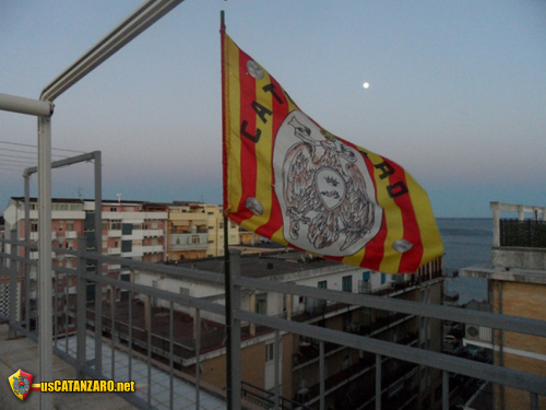 Mentre percorri le strade di Catanzaro per arrivare a Piazza Stadio vedi una bandiera giallorossa esposta da un balcone e anche questa è oggetto di discussione.